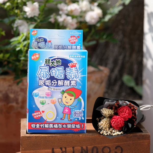 若馬桶存水彎液面太低,可先倒一瓢水進馬桶,讓存水彎液面升高超過尿垢後再倒入【尿垢清】,務必要讓尿垢浸泡在酵素混合液中,分解效果最好。